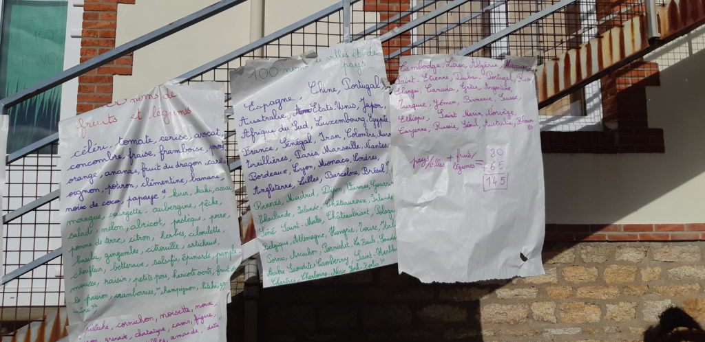 Les classes de CP/CE1, CE1 et CE1/CE2 ont démarré au début de l’année une activité quotidienne : « chaque jour compte ». Cela consiste à compter chaque jour d’école. Ce rituel quotidien permet de travailler des notions importantes en mathématiques pour le cycle 2 : dénombrer, connaître la valeur des chiffres en fonction de leur position, décomposer un nombre en unité/dizaine/centaine, décomposer un nombre en addition, écrire des nombres en lettres…