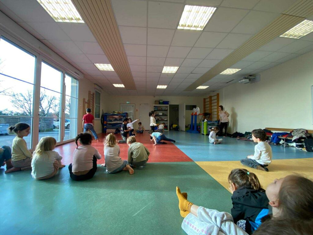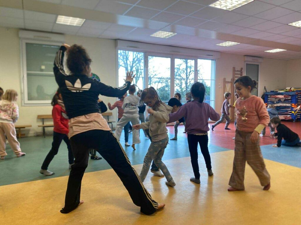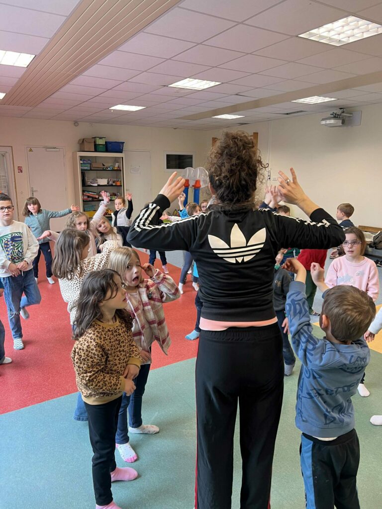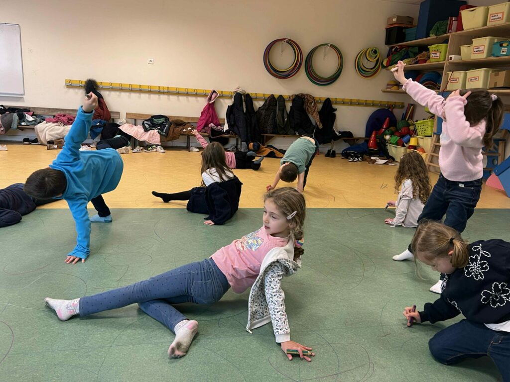 Les élèves ont également bénéficié en début de semaine d’un atelier pour les préparer au spectacle où ils ont expérimenté le mouvement à travers le dessin au sol. C’était super !
